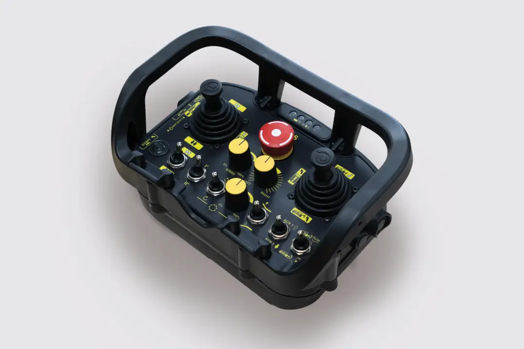 With fingertip control from up to 150m away, ROBOCUT's fully proportional joystick system gives you total control over movement, speed and attachment functions. The control includes: